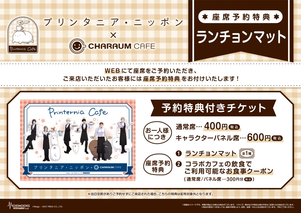 「プリンタニア・ニッポン」×キャラウムカフェの事前予約チケットをご購入いただき、ご利用いただいたお客様に特典ランチョンマット(全1種)を1枚プレゼント!