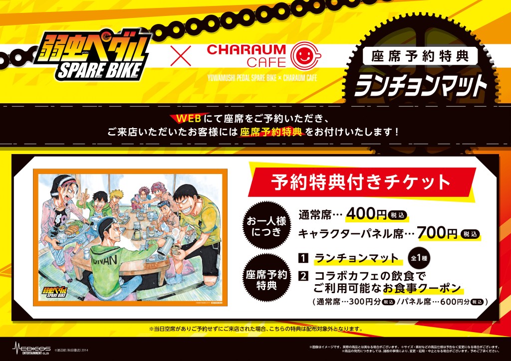 『弱虫ペダル SPARE BIKE』×キャラウムカフェの事前予約チケットをご購入いただき、ご利用いただいたお客様に特典ランチョンマット(全1種)をお一人様につき1枚プレゼント!