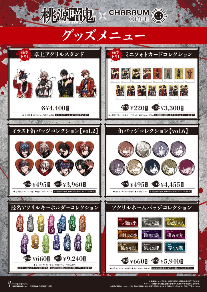 期間中、『桃源暗鬼』コラボフード・コラボドリンクを1品ご注文ごとに特典コースターをランダムで1枚配布いたします。