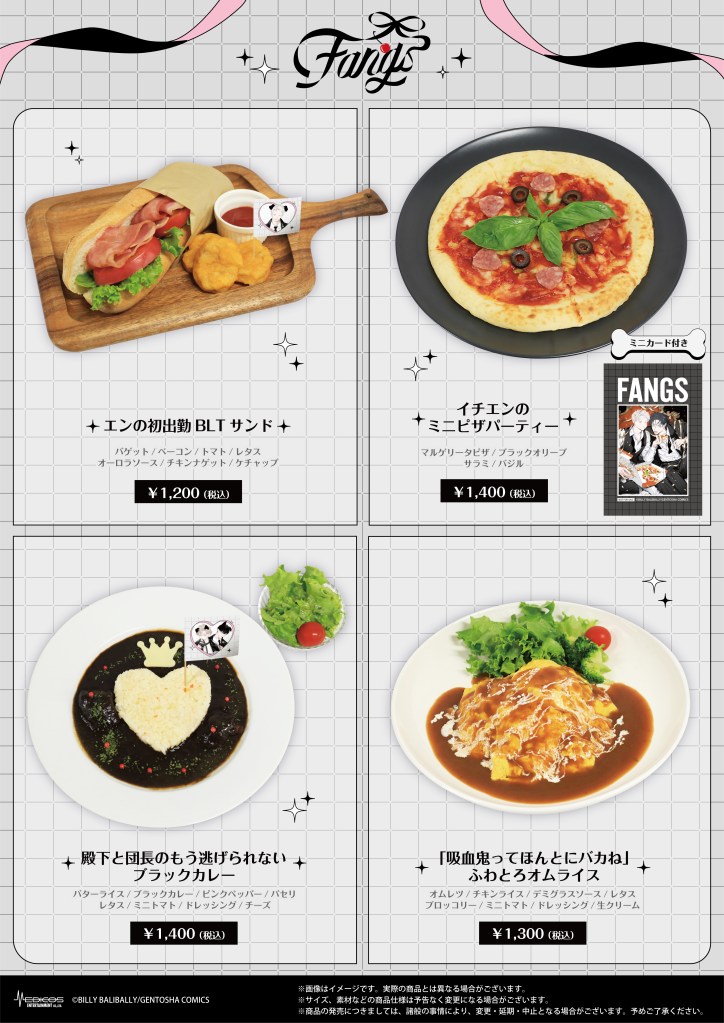 期間中、『FANGS』コラボメニューを1品ご注文ごとに特典コースターをランダムで1枚プレゼント!