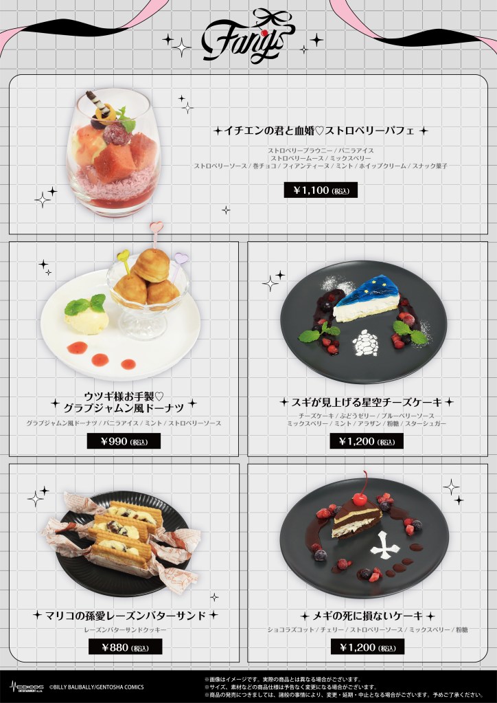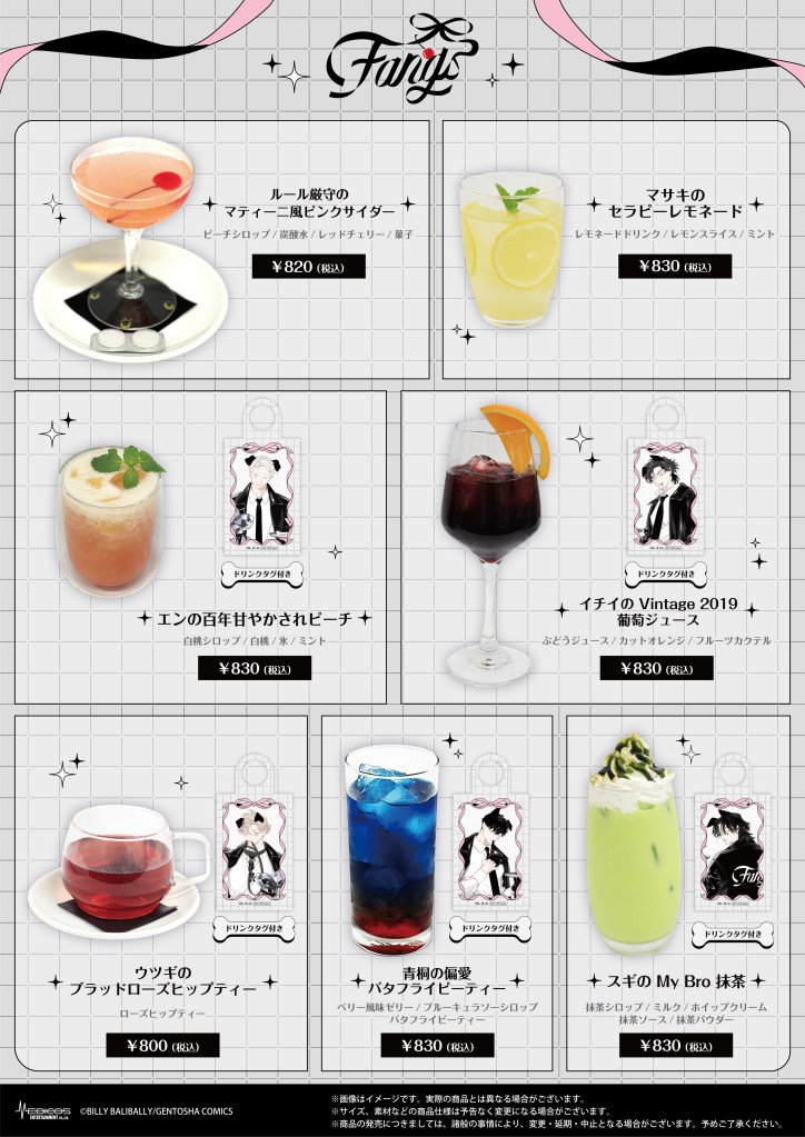 ・当カフェのメニュー、特典には数量に限りがございます。万が一お品切れの際はご容赦くださいますようお願いいたします。