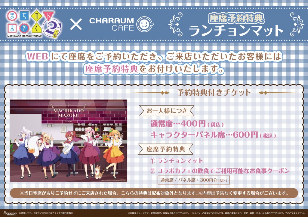 TVアニメ「まちカドまぞく 2丁目」~喫茶「あすら」池袋出張店~inキャラウムカフェの事前予約チケットをご購入いただき、ご利用いただいたお客様に特典ランチョンマット(全1種)をお一人様につき1枚プレゼント!