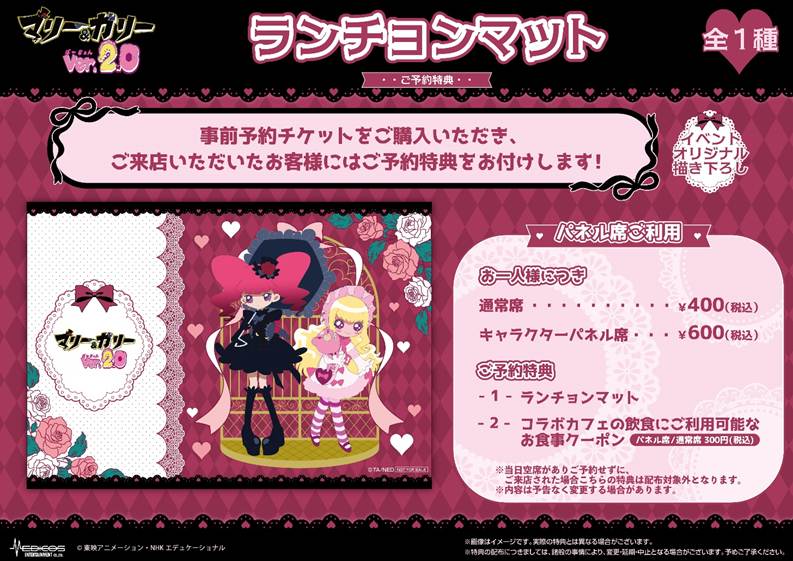 「マリー&ガリーver.2.0」×キャラウムカフェの事前予約チケットをご購入いただき、ご利用いただいたお客様に特典ランチョンマット(全1種)をお一人様につき1枚プレゼント!