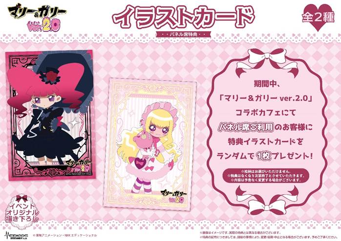 期間中、「マリー&ガリーver.2.0」関連商品(コラボメニューを含む)を税込3,000円お買い上げごとに特典ミニカード(全5種)をランダムで1枚プレゼント!