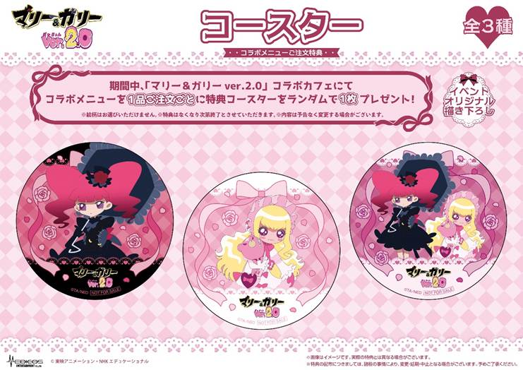 期間中、「マリー&ガリーver.2.0」コラボメニューを1品ご注文ごとに特典コースター(全3種)をランダムで1枚プレゼント!