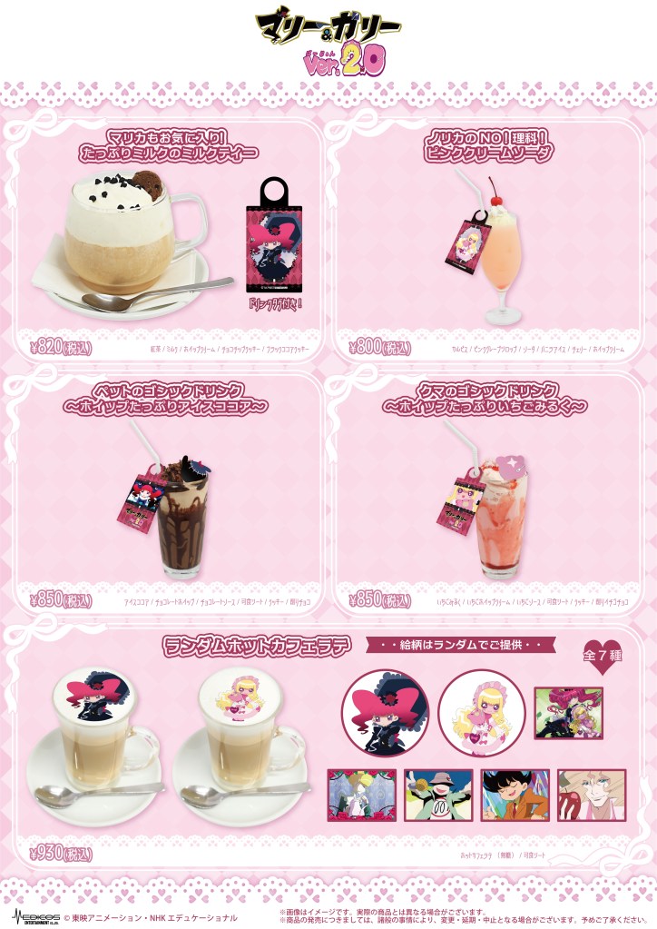 期間中、「マリー&ガリーver.2.0」コラボメニューを1品ご注文ごとに特典コースター(全3種)をランダムで1枚プレゼント!