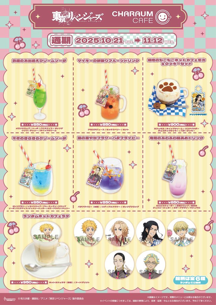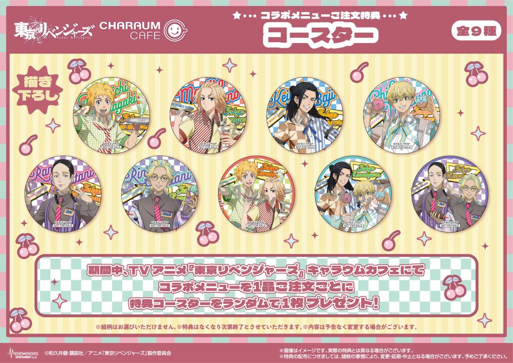 期間中、TVアニメ『東京リベンジャーズ』コラボメニューを1品ご注文ごとに特典コースター(全9種)をランダムで1枚プレゼント!