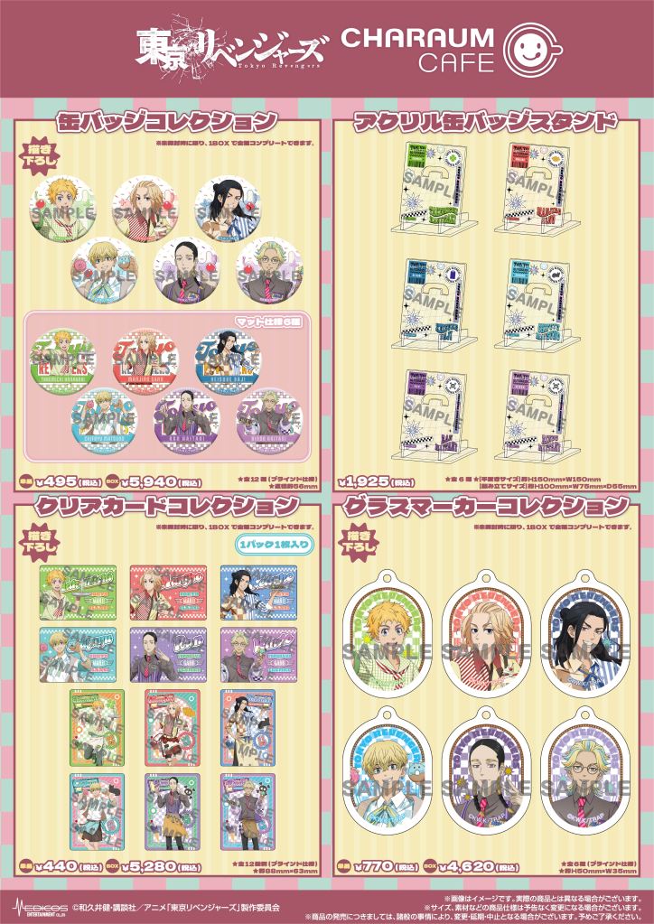 期間中、TVアニメ『東京リベンジャーズ』関連商品(コラボメニューを含む)を税込3,000円お買い上げごとに特典ミニフォトカード(全9種)をランダムで1枚プレゼント!